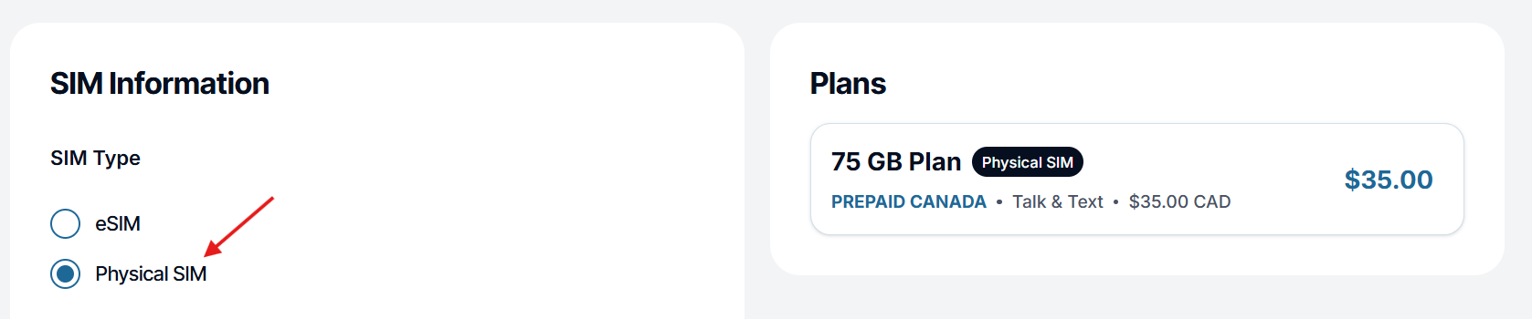 Beachte: Um eine physische SIM-Karte per Post zu erhalten, musst du diese Option im Warenkorb während des Bestellvorgangs auswählen.